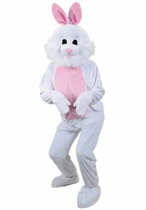 Our White Easter Bunny Mascot includes head and jumpsuit with attached shoe and hand covers.Â