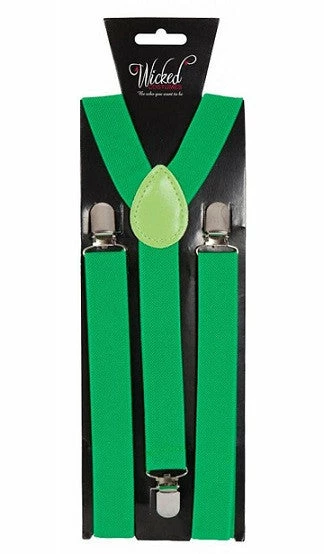 Our green elasticated braces will complete a wide range of fancy dress costumes.Â