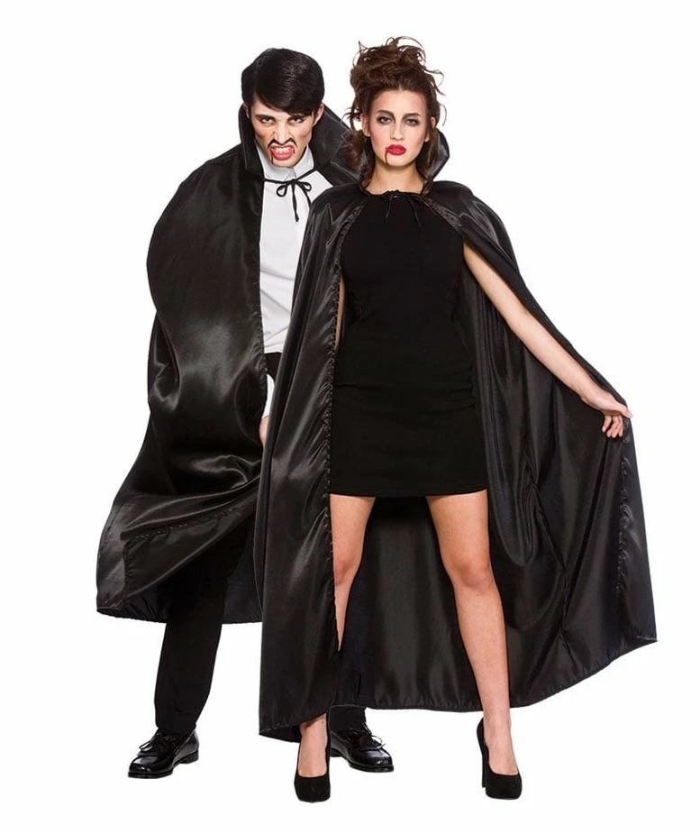 This black cape with stand up collar is perfect for vampires, witches and wizards.