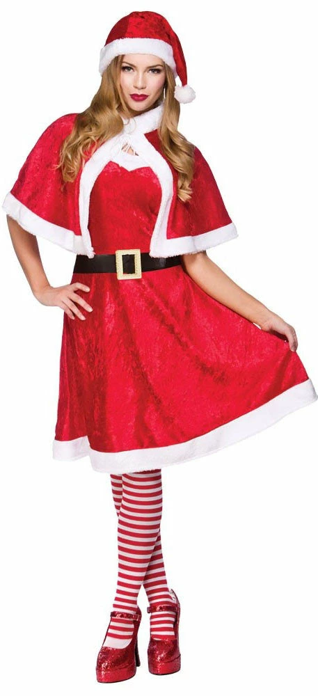 Our Little Miss Santa costume Includes a dress, cape, hat and belt.