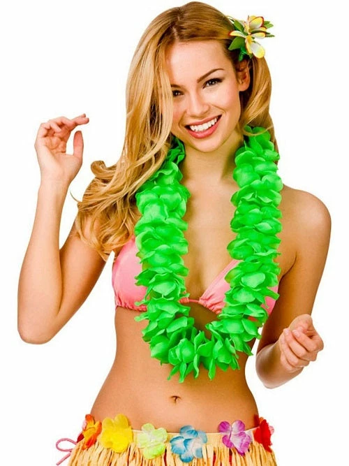 Add the finishing touch to your Hawaiian look with our Petal Lei in Green. Also available in Orange, Yellow, Red, Royal Blue and Hot Pink.Â