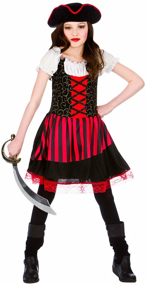 Our Pretty Pirate Girl costume comes complete with dress and hat.