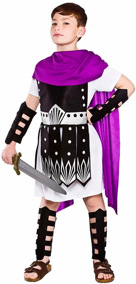 Our Roman Warrior costume comes compete with tunic with armour, cape, arm and leg guards.
