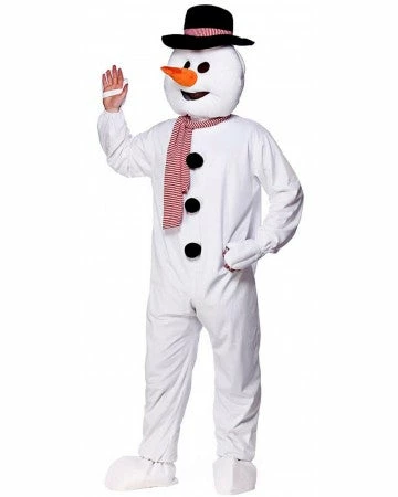 Our Snowman Mascot includes head and jumpsuit with attached shoe and hand covers.Â