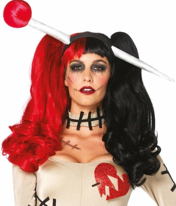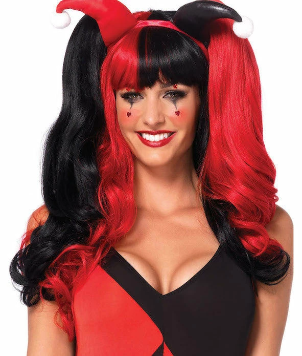 Our Leg Avenue Harlequin wig has clip-on pony tails and adjustable strap.